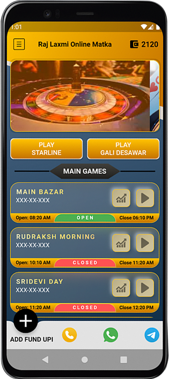 Let your guessing win you massive amount through Raj Laxmi App. Join our platform for expert advice and Matka tips. Get the most trusted results daily. Play Online Matka through Raj Laxmi is the most preferred and platform for online Matka play. It provides the most updated Satta Matka play results. Our app is one stop for all the updated live results for various Matka market. Use Raj Laxmi to get the live updated results and earn huge profit. Earn Real Money through your tricks and updates.